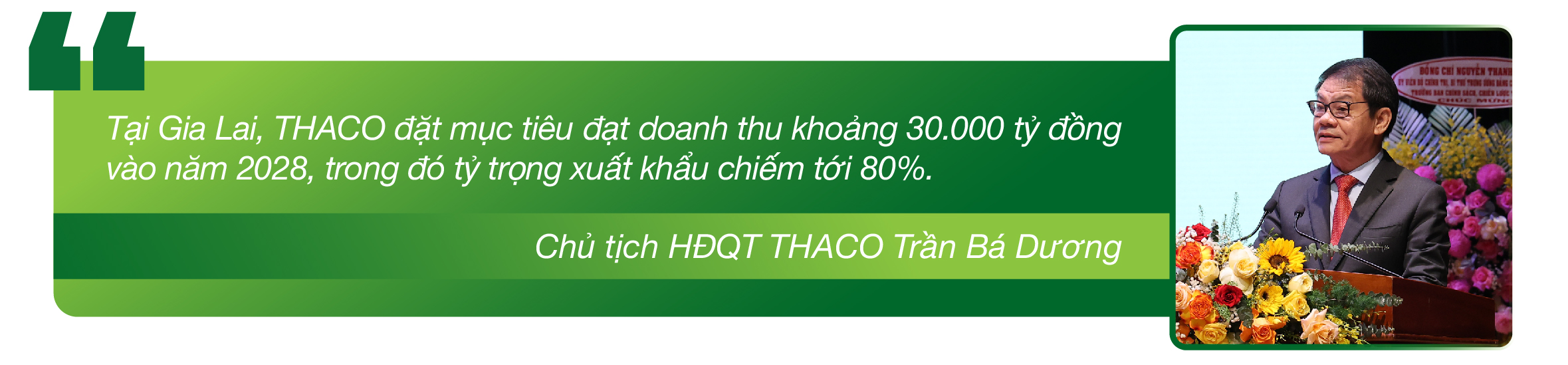 Tại Hội nghị xúc tiến đầu tư tỉnh Gia Lai năm 2026, Chủ tịch HĐQT THACO Trần Bá Dương cho biết Tập đ...
